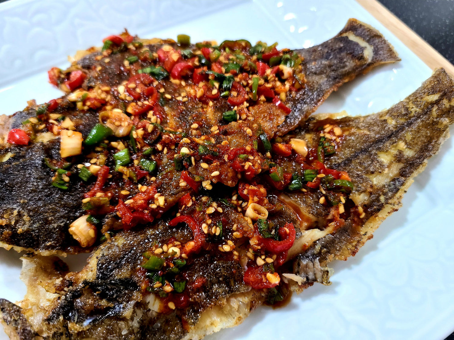 🎣 신선한 가자미를 깨끗이 손질한 후, 소금으로 간을 살짝 맞추고 센 불에서 바삭하게 구워내면!