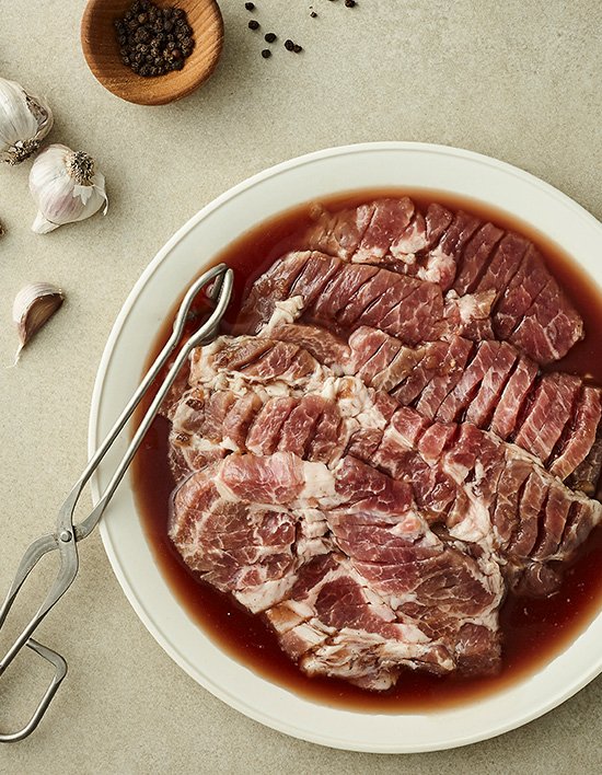 육즙 가득한 목살을 특제 간장 베이스 양념에 숙성시켜, 달콤 짭조름한 양념이 부드러운 목살에 스며들어, 한입 가득 풍부한 감칠맛을 선사합니다.
