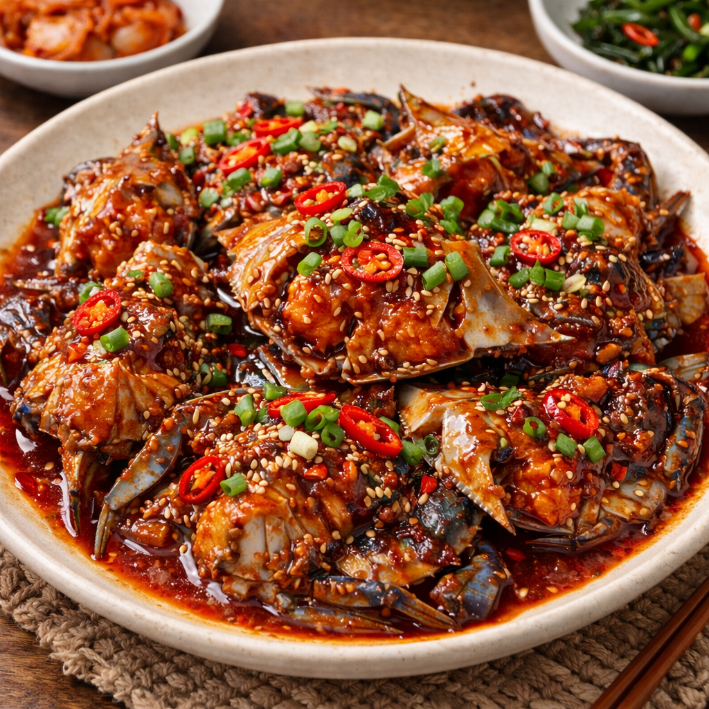 신선한 꽃게에 매콤달콤한 양념을 숙성시켜 부드럽고 짭쪼름한 맛이 일품인 한국음식 입니다.