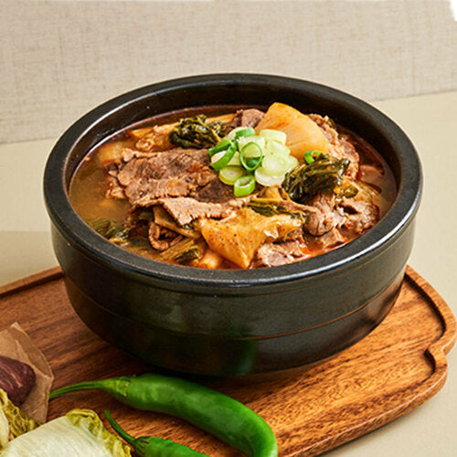 오랜 시간 정성껏 고아낸 양지 육수에 푹 삶아낸 배추 우거지를 더해 깊고 진한 풍미를 자랑하는 한국 전통 국밥으로 부드럽게 삶아낸 양지살은 결결이 부서질 만큼 연하며, 우거지는 국물에 고소하고 구수한 맛을 더해줍니다. 담백하면서도 감칠맛이 살아 있는 국물은 속을 편안하게 달래주며, 든든한 한 끼 식사로 제격입니다.